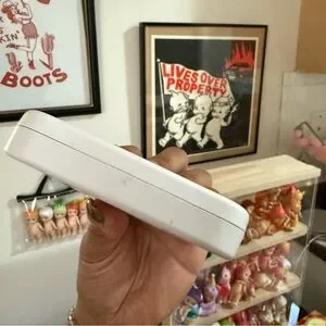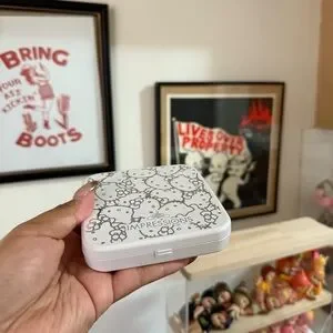 Charming compact with Hello Kitty design. Features elegant silver accents. Ideal for quick touch-ups.