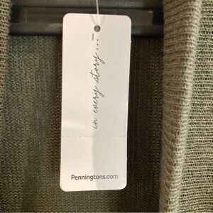 IN EVERY STORY Sz 2X Slinky Open Front Ribbed Front Long Line Cardigan NEW. Super soft and drapy. Thin jersey knit that lends itself to layering for that contemporary luxury look. Gorgeous dark olive colour.