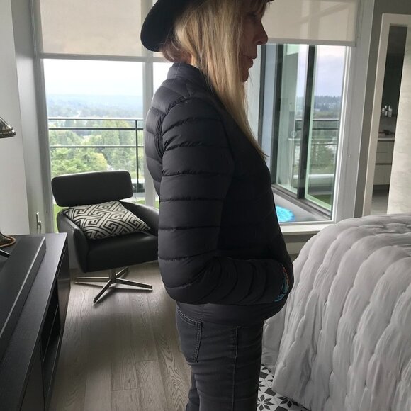IN WEAR Lightweight Black Down Puffer Jacket Collarless Packable S
