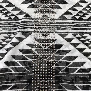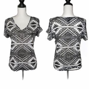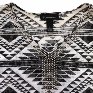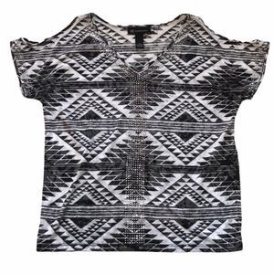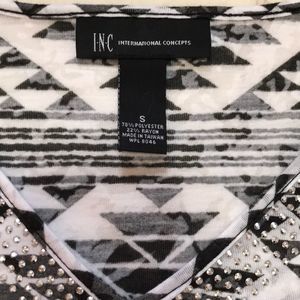 INC Cold Shoulder Aztec Print Rhinestone Tee