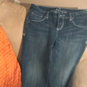 Denim crops that end just below the knee. Comfortable fit with 1% spandex. 66% cotton and 33 % polyester