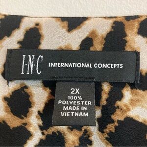 INC INTERNATIONAL CONCEPTS Sz 2X Faux Wrap Balloon Sleeves Leopard Print Blouse