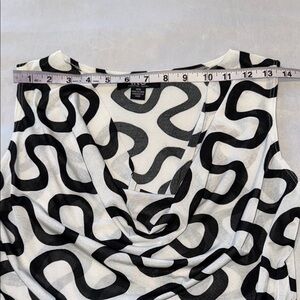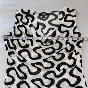 INC International Concepts Blouse Cowl Neck Black White Sleeveless Shirt Top SzM