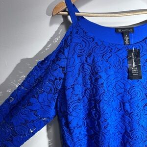 INC International Concepts Blue Cold Shoulder Lace Blouse Size 1x NWT Brand New