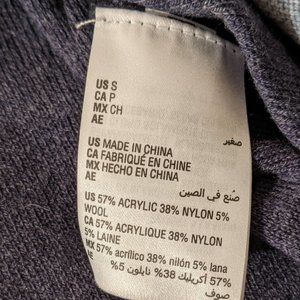 This thin knit sweater features a geometric pattern. It is great with a pair of jeans. The hem is rounded with side slits and the sweater is roomy. Great with jeans. In very good condition. I couldn't tell if there was a tiny pull, so I included a photograph (last picture).