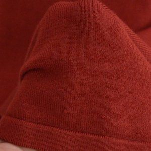 A few picks in the back near the bottom of the hem (pictured), no holes