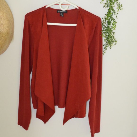INC International Concepts Faux Suede & Knit Open Draped Cardigan Rust Size XL