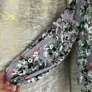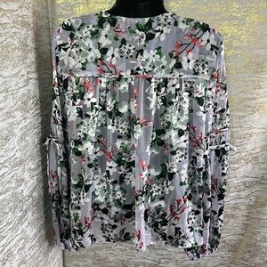 INC International Concepts Floral Print Sheer Long Sleeves Blouse Size M