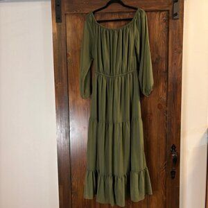 INC International Concepts Large Off-The-Shoulder Tiered Green Maxi Dress NWT