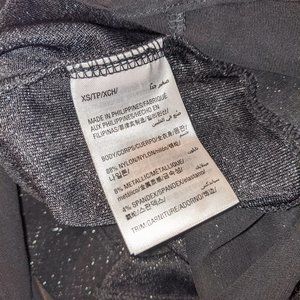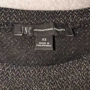 The fashionable light sweater is new with tags. The silver metallic and chiffon hem dress up a top that works for evening or daytime with jeans. Pit to pit measurements are approximately 17.5".