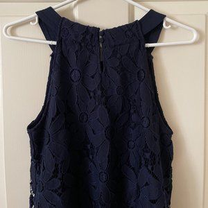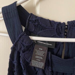 Excellent condition I.N.C International Concepts navy blue halter lace floral top. Size medium.