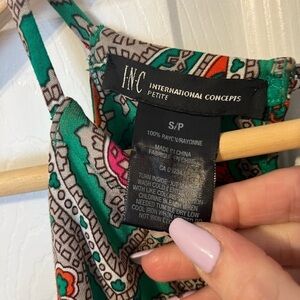 This is an absolutely gorgeous maxi dress! Green with floral paisley design and rows of amazing beading around the neck.