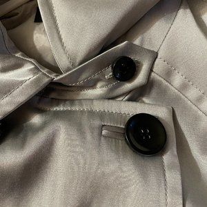 Belted details add interest. Belt with belt loops and belted cuffs.
