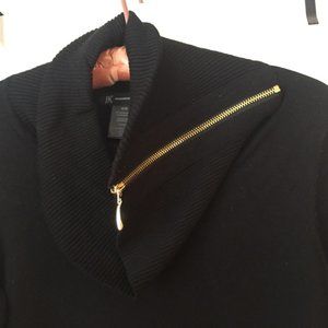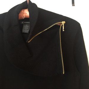 This black sweater is a medium weight with a side zip cowl. It looks great with leggings or jeans - the chest is ~36", the sleeves are ~25" long and the back is ~29"long. It is a medium and in very good condition.