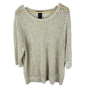 INC International Concepts Sweater Woman Plus Size 3X Silver Open Knit Pullover