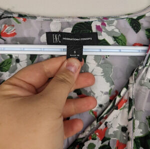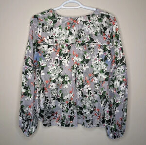 INC International Concepts Tie V Neck Grey Floral Textured Blouse Women Small