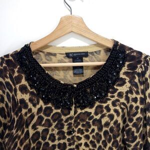 INC International Concepts Angora Blend Leopard Print Cardy with Beaded Collar