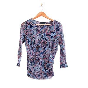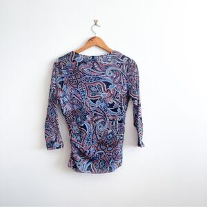 INC International Concepts Blouse Paisley Rhinestones Stretchy Ruching Women's L