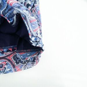 INC International Concepts Blouse Paisley Rhinestones Stretchy Women's L. The front and bottom of the back are lined. The top of the back and the sleeves are unlined and a bit sheer. Side ruching. Very good used condition. Please see photos for approximate measurements.