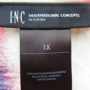 INC Pink Purple & White Poppy Print Tee 1X NEW