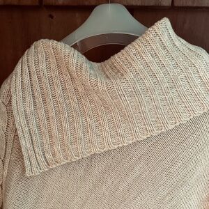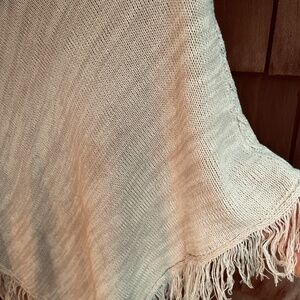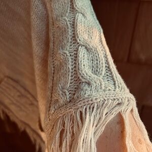 INC Poncho Slit Cowl Neck Fringe Boho Tan Sweater Pockets One Size