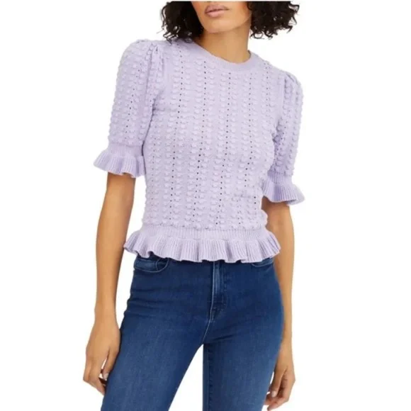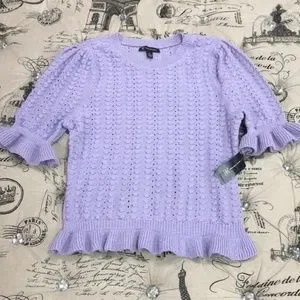 INC International Concepts pullover sweater features a popcorn-stitch texture and softly ruffled trim for a pretty finish.
