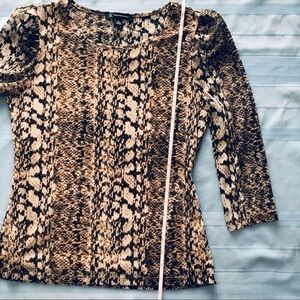 INC Snakeskin Animal Print Mesh Blouse. 3/4 sleeve stretchy pullover top 12P