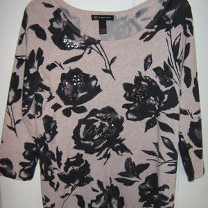 INC Soft Heathered Pink Floral Sweater