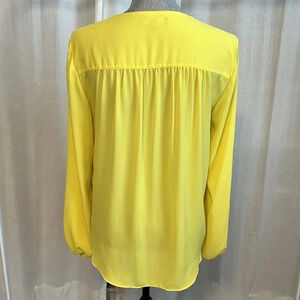 I.N.C International Concepts Beautiful Bright Yellow long sleeve blouse front v neck wrap style and elasticized arm. Longer style to wear tucked in or undone with trousers or tights. Excellent condition.