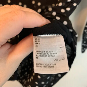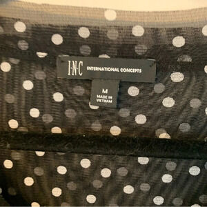 INC black white polka dot V-neck blouse 3/4 sleeve mesh M