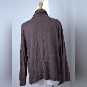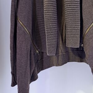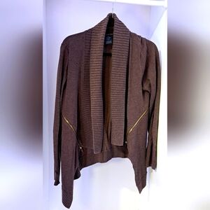 INC international concepts | Chocolate brown cardigan with gold zippers , has a layered flowy look. woman's size medium