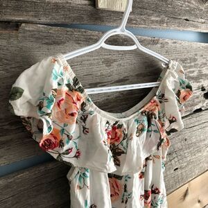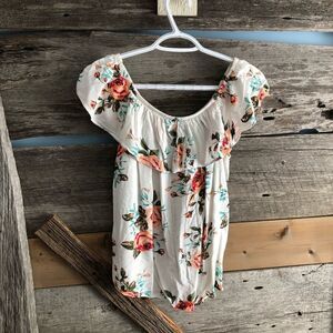 INC size Med White, floral, top ruffle blouse