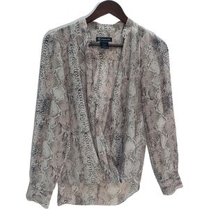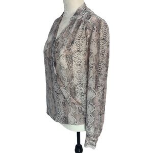 INC🌺FAUX Wrap Reptile Print Grey Long Sleeve Blouse Top Size 6