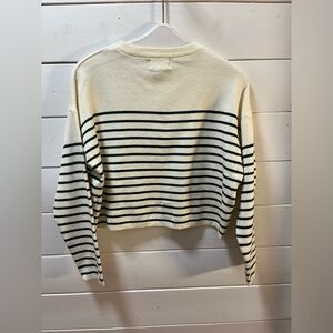 INDIE + MOI – Cropped Sweater “AMOUR” with Forest Green Stripes Size S (T1)