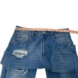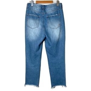 INDIGO REIN Ankle Grazer Distressed Straight Leg High Rise Jeans Sz 27