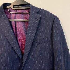 INDOCHINO Wool Reigate Stripe Navy Suit Contrasting pink lining