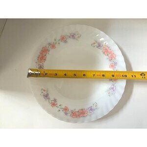 INDOPAL Indonesia 60's 70's Serving Dish Pink Floral White Opaline Milk Glass 10 1/4"
