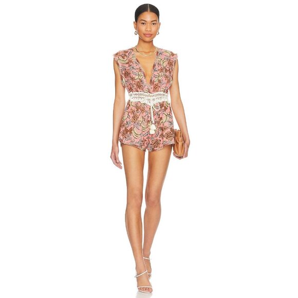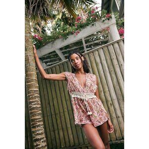 INTIMATELY FREE PEOPLE Watching Waves Pink Floral Cotton Voile Romper, Size S