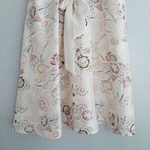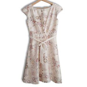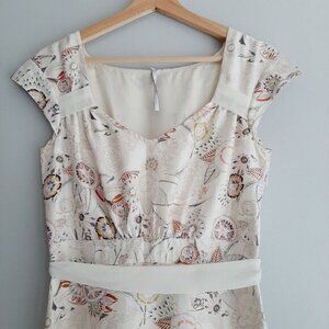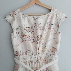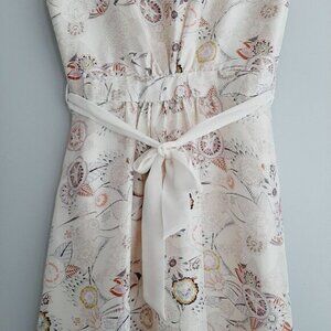 • Cute sweetheart neckline defined waist silk dress in creamy ivory white with flower print. Side zip closure and matching belt.