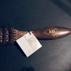 ION Etched Wood Vent Brush Flexible Bristle Lightweight Detangling