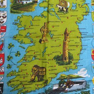 Vintage 100% Linen, Made in Ireland, Scenic Teatowel of the Map of Ireland,