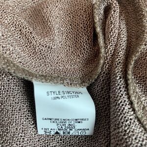 Excellent condition with no flaws. Stunning quality. Very light material so perfect for spring or summer. The knit is so light it’s almost like a mesh type of material. Transparent sheer. Gorgeous tan brown taupe color.