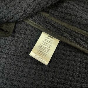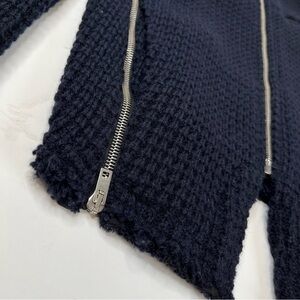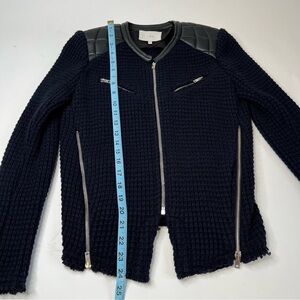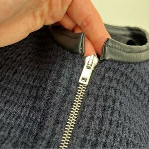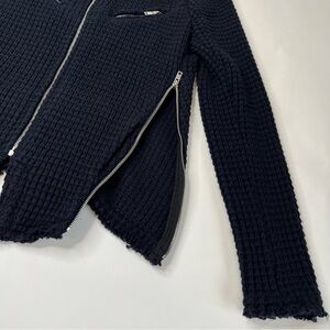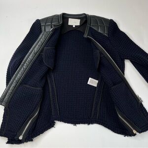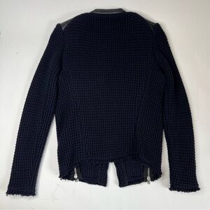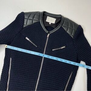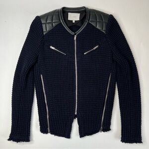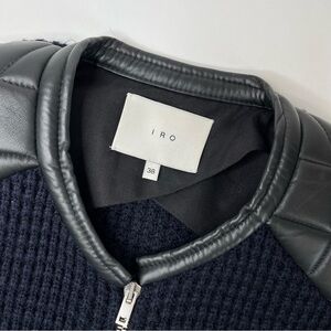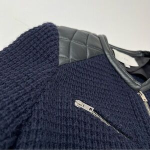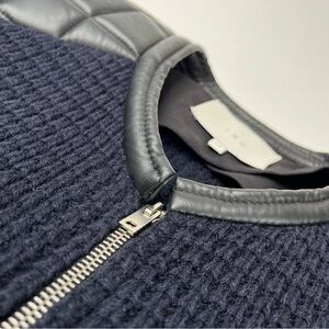 IRO Ceylona Navy Blue Waffle Pattern Knit Black Quilted Leather Edgy Zip Blazer