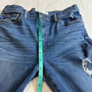 Chic high rise jeans with a distressed look. Perfect for casual wear. Pairs easily with any top.