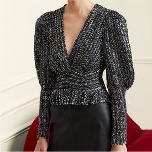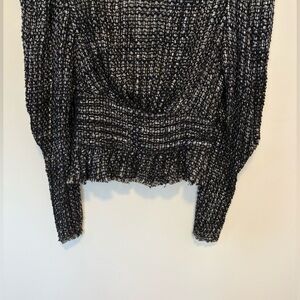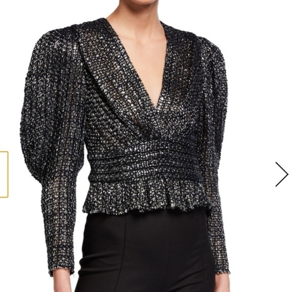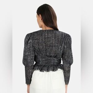 Top Metallic Bouclé Frayed trims Pleated Shoulder pads