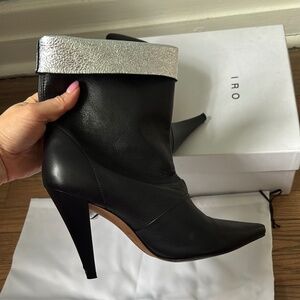 Step out in style with these chic IRO leather boots. Featuring a sleek black design with a striking silver accent, these boots are perfect for any occasion. Elevate your wardrobe with IRO's signature elegance.