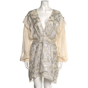 IRO ivory long sleeve dress with silver metallic embroidery - FR 42 (US 10)