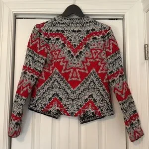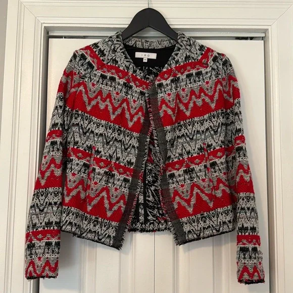 Like new size 34 IRO jacket in a stunning red, black, white pattern.