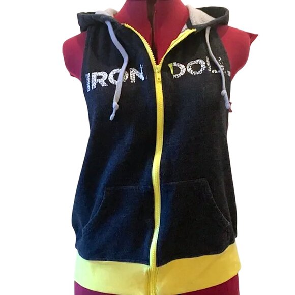 IRON DOLL - Vintage Zip-Up Sleeveless Hoodie - Racerback Roller Derby Small