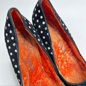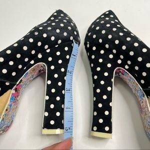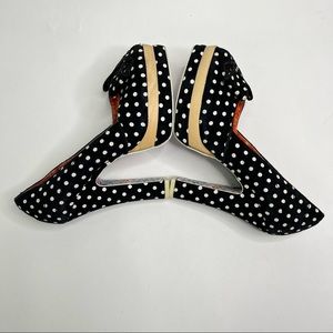 IRREGULAR Choice Black White Velvet Retro Pin-up Polka Dot Peeptoe Platform Heel